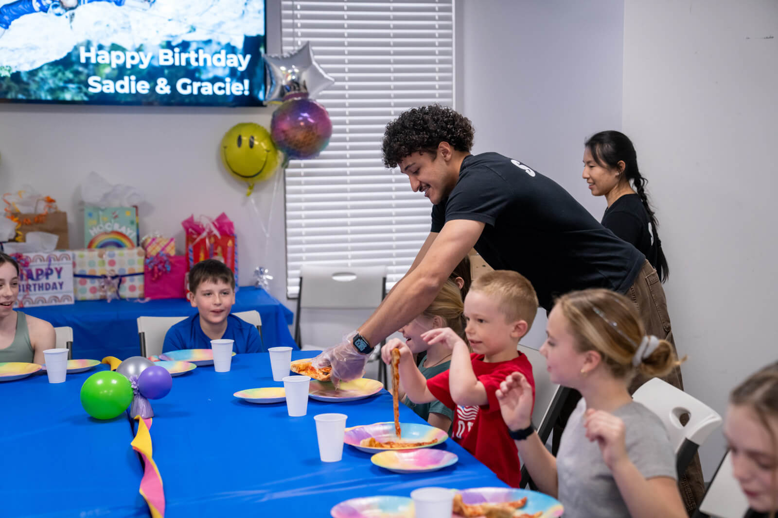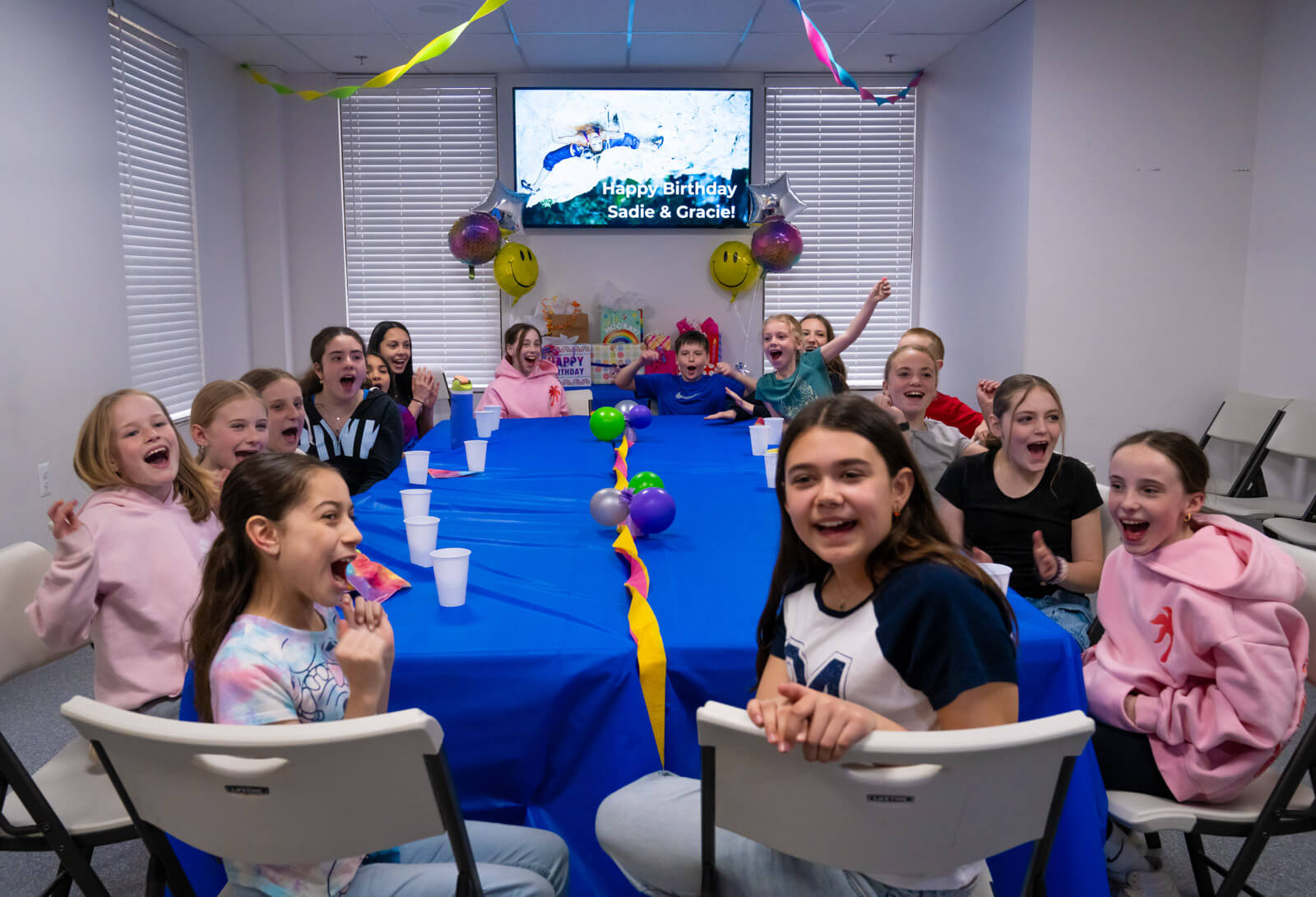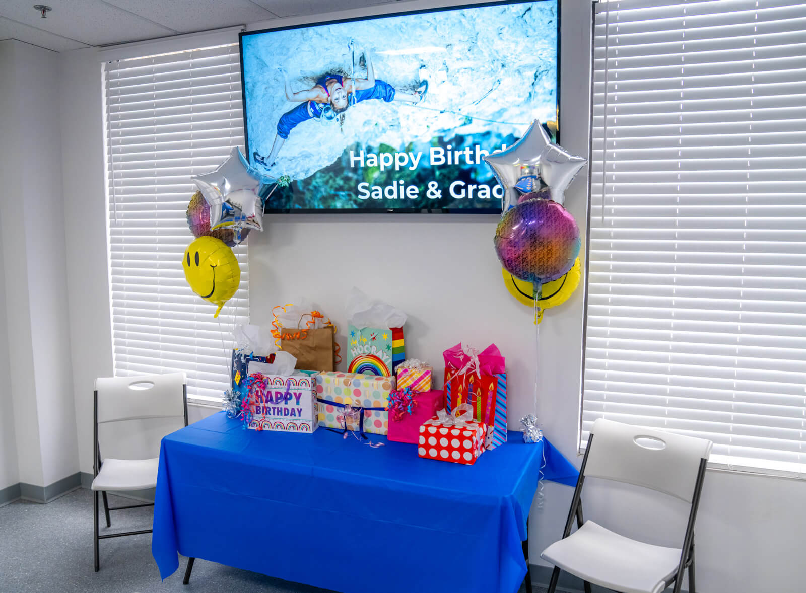 - Custom “Happy Birthday” digital display and welcome sign